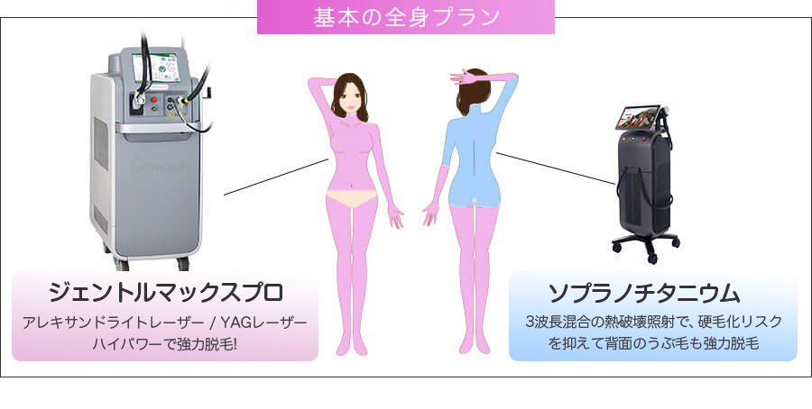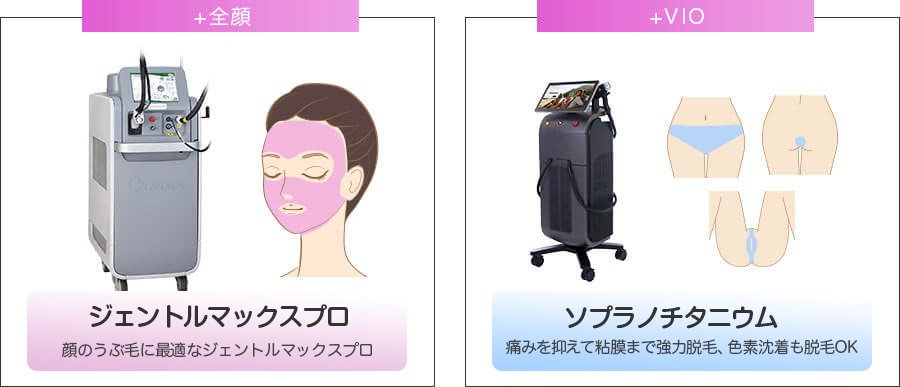 また、ジェントルマックスプロ(プラス)が苦手とする毛質や肌質の部位のみ、別の脱毛機に変更することでフォローをしています。