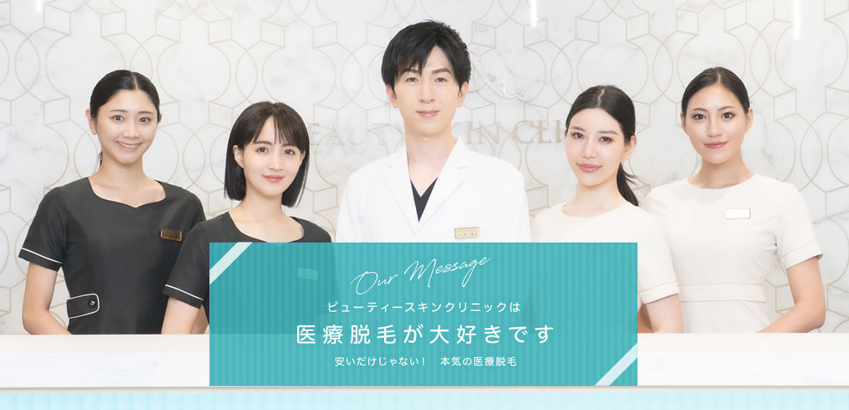すべての女性の肌を輝かせたい思いから、2016年にビューティースキンクリニックを開院。これまで1万人以上の医療脱毛を施術させていただきました。日々研鑽、研究を重ね、高品質な医療脱毛を提供してまいります。