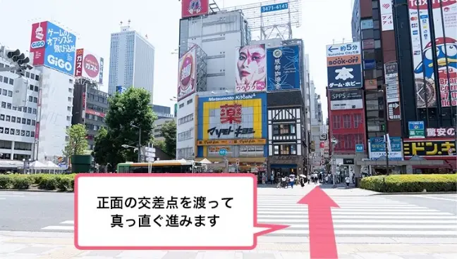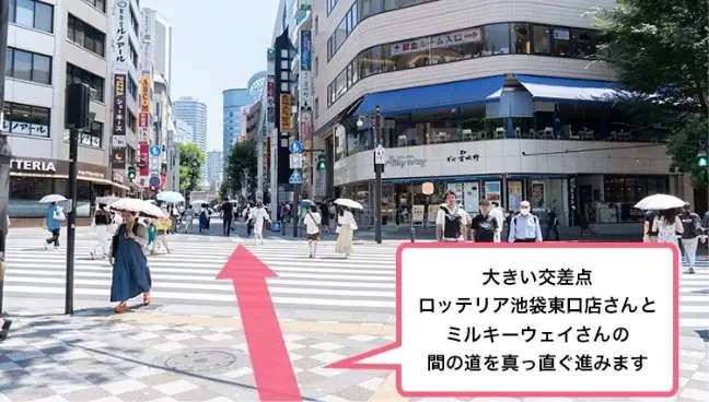 大きい交差点を渡り、ロッテリア池袋東口店さんとミルキーウェイさんの間の道を真っ直ぐ進みます。