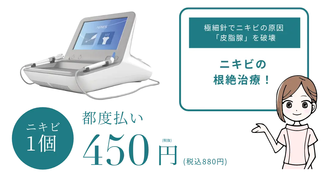 ビューティースキンクリニック渋谷院では、クリニックだからできる機械や薬剤を使用してニキビの治療を行い、一般皮膚科が提供している公的保険が適用されるニキビの治療(今あるニキビの治療)だけではなく、患者様に最適な治療法でニキビができにくくなるお肌へと変化させる治療を行っております。